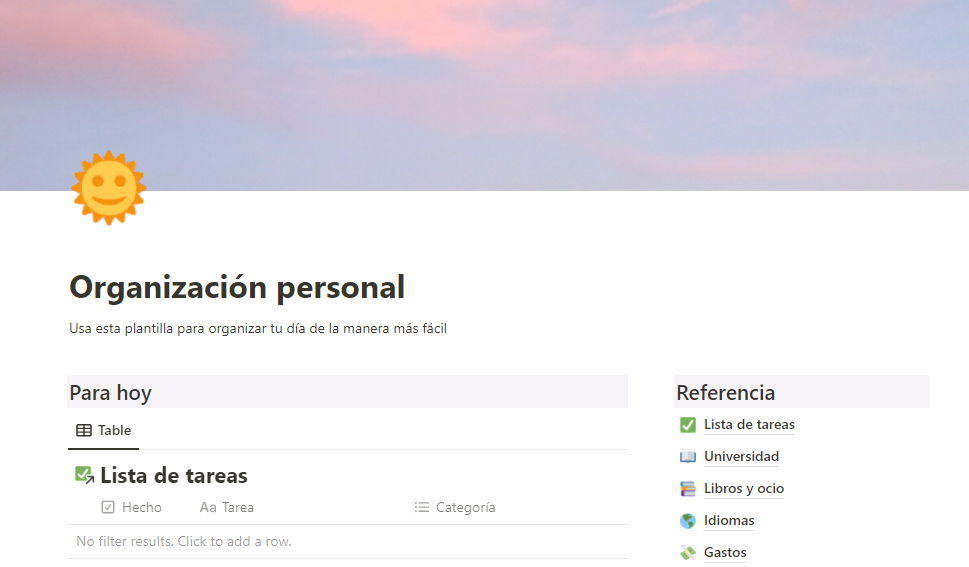 Organización personal$0+$0+https://schema.org/InStockusdJavier Arteaga GonzalesJavier Arteaga GonzalesPlantilla Notion de organización personal básicaName a fair price:$I want this!Add to wishlist New wishlistShareShare on XShare on Facebook Copy linkCopy product URL